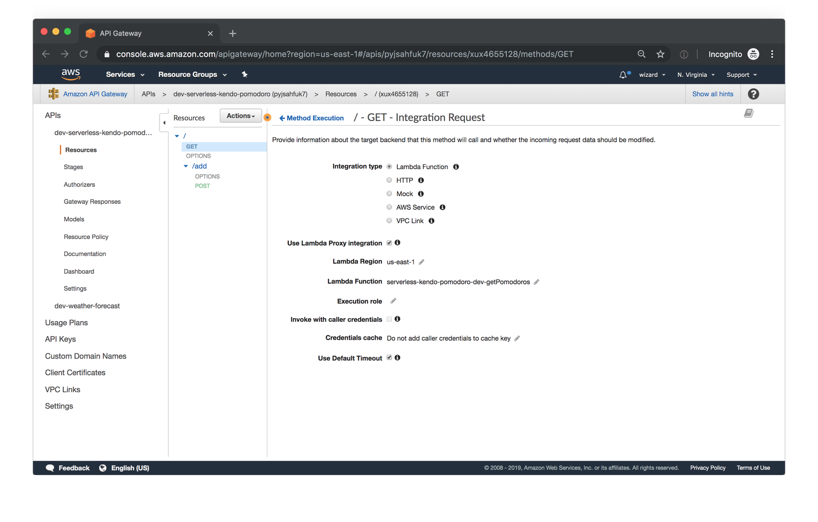 While the user interface is a good way to try out API Gateway, we recommend creating your API structure in code, for example, using the Serverless Framework’s built-in API Gateway event.