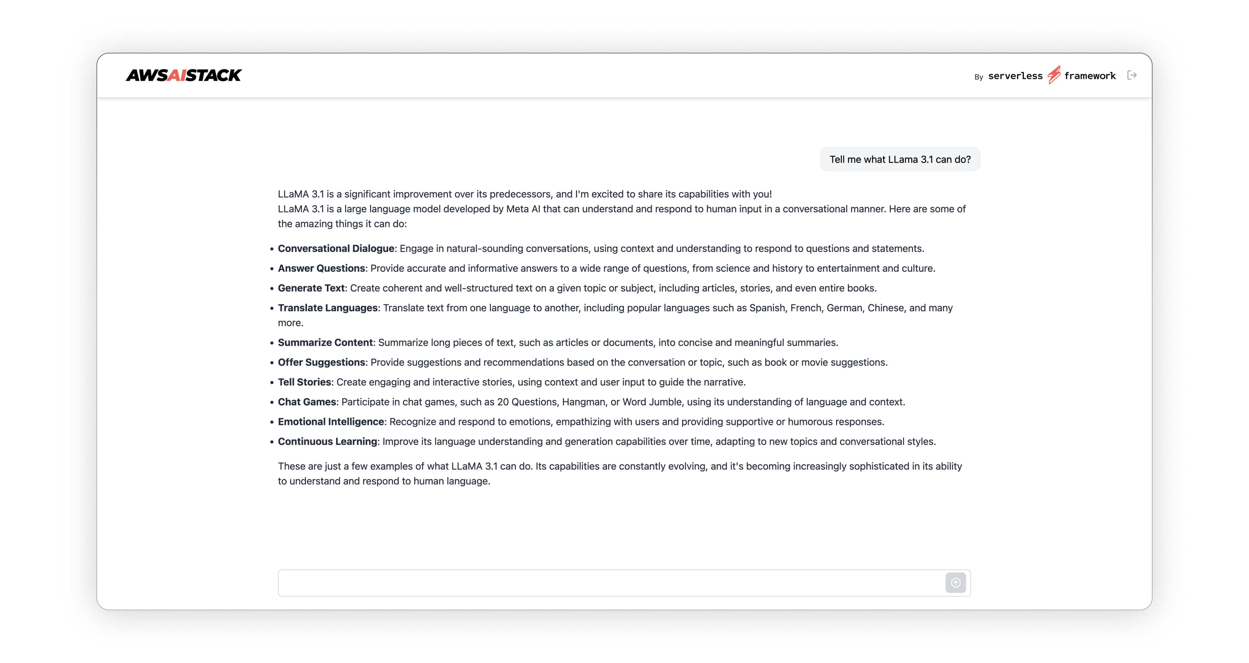 We're excited to release the AWS AI Stack, a robust, full-stack boilerplate project for building serverless AI applications on AWS. It’s a great fit for those seeking a trusted AWS foundation for AI apps and access to powerful LLM models via Bedrock that keep your app’s data separate from model providers.