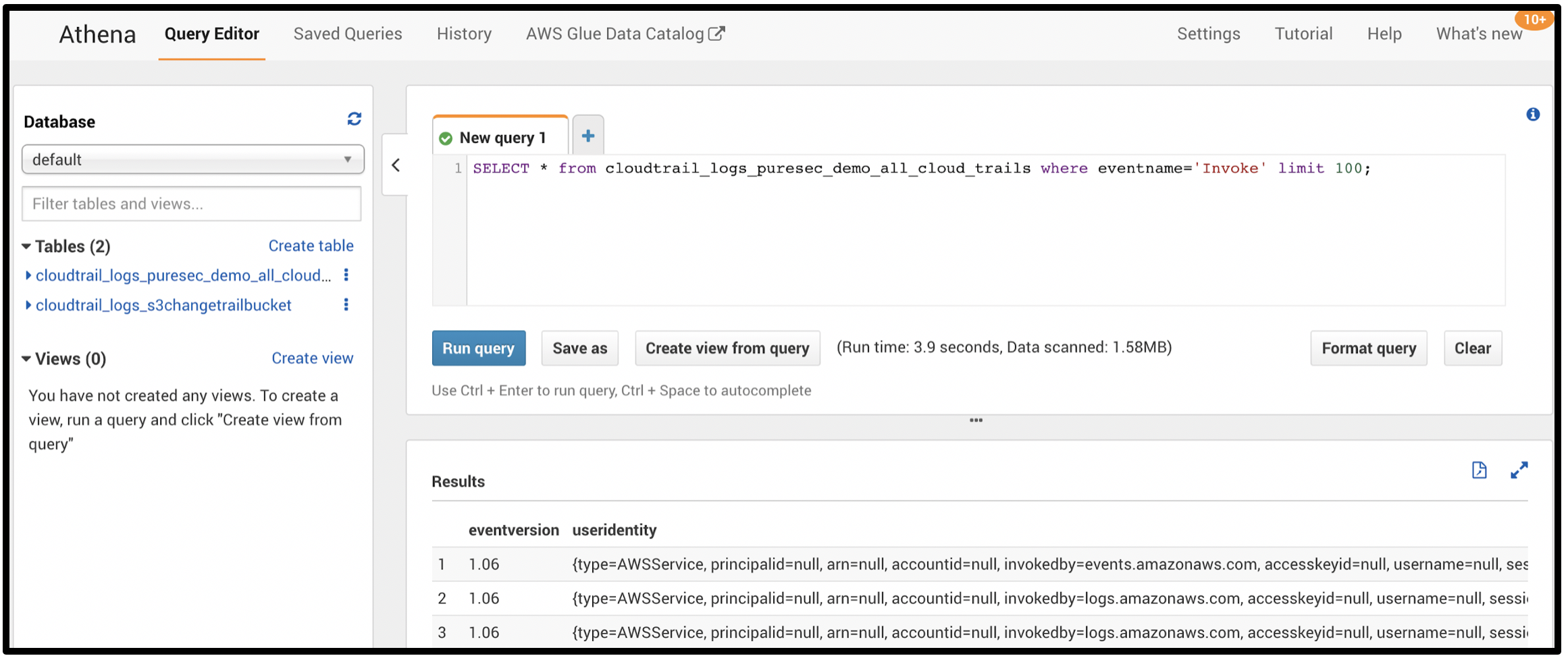 A trail enables CloudTrail to deliver log files to an Amazon S3 bucket. Once logs are stored in S3, they can be queried using SQL queries on the trails through AWS Athena. This is by far more efficient than “grepping” through JSON log dumps.