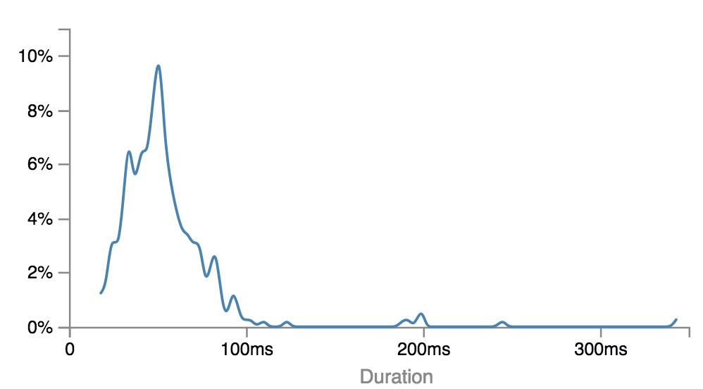 Approximately 2% of the total calls were cold starts. I noticed an additional latency of 700ms-800ms in Lambda execution time for the first API call, which came from initialization of the Lambda container itself.