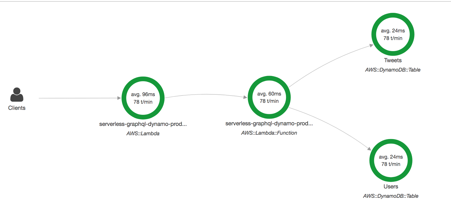 The service map below was created by AWS X-Ray: