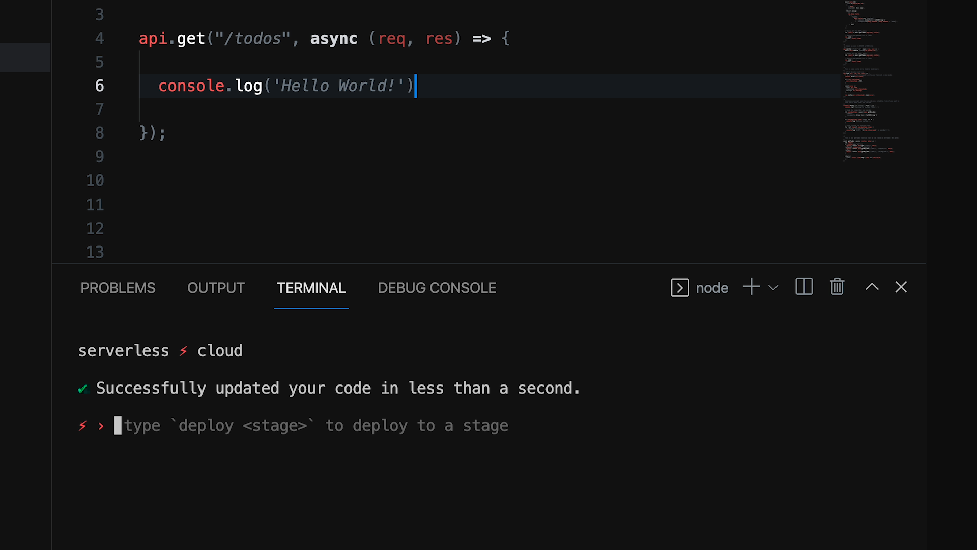 On every save, your changes sync to the cloud in less than a second. Your logs and errors stream into the CLI in real-time. You develop in the same type of environment as your production app–at the speed of local development.