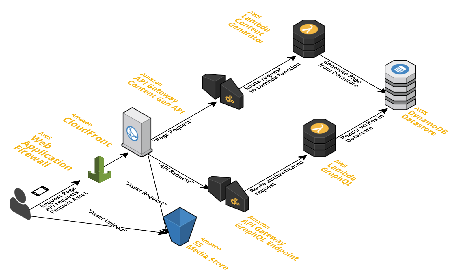 Trek10 designed and built a serverless infrastructure, using the Serverless Framework, for PlayBrain that is centered around event-driven computing with AWS Lambda. The architecture in all cases relies on the highly performant GraphQL, Lambda, API Gateway, DynamoDB (GLAD) stack and CloudFront for edge caching of static content to speed up read times of the application content.