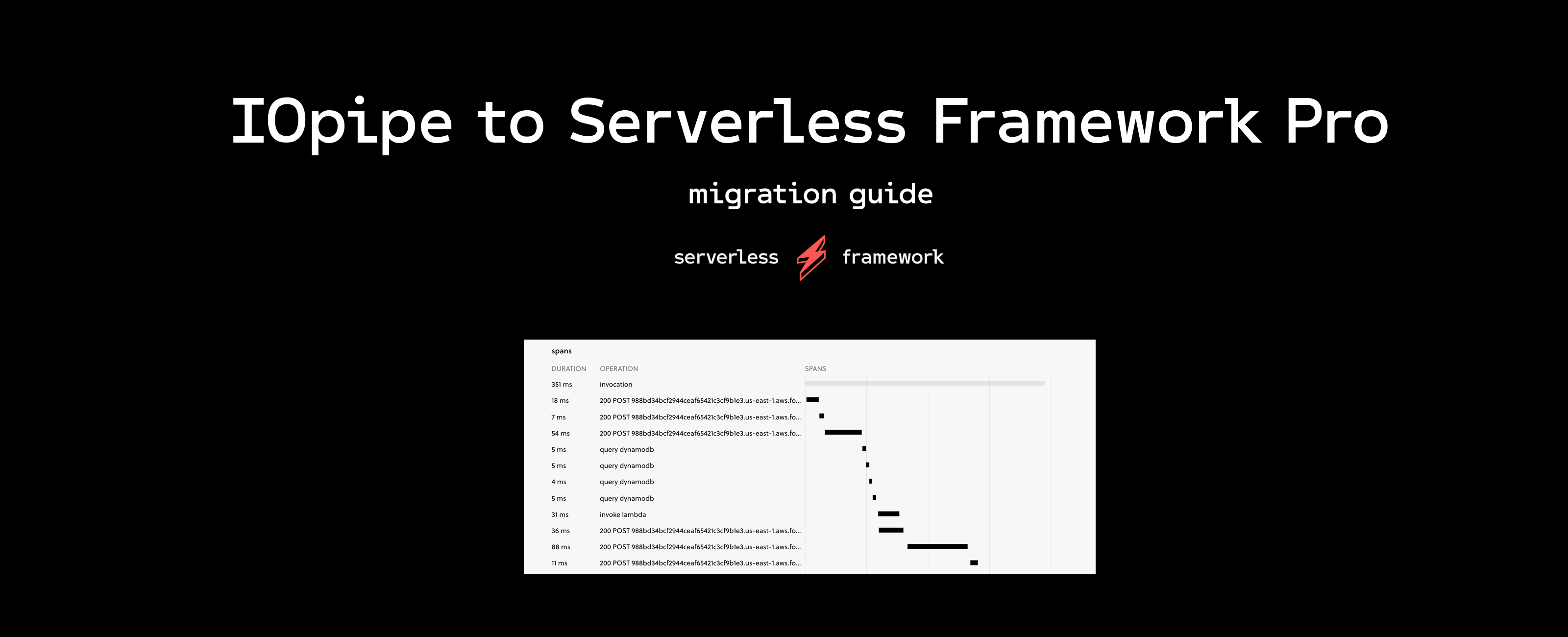 We're always trying to think about how the features we build can help meet your development needs and save you time previously stuck debugging. Have a question about how we compare to IOpipe or want more details? Leave a comment below or take a look at all the features included in Serverless Framework Pro.