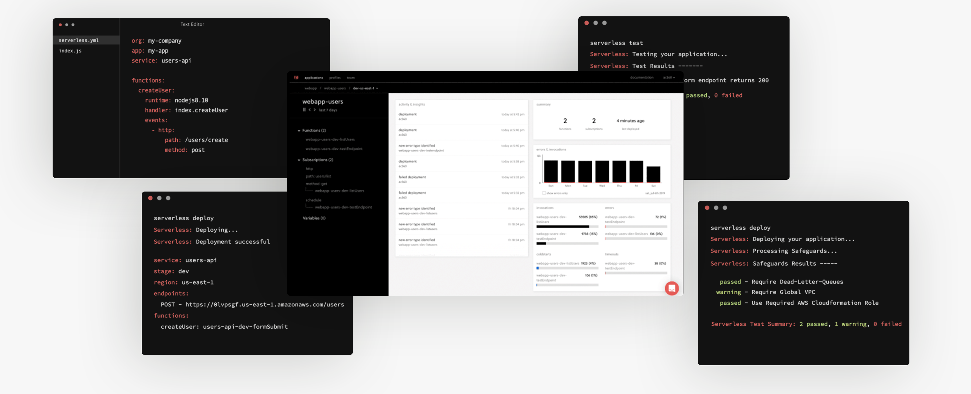 If you want to just use the open source Serverless Framework CLI to develop and deploy your serverless applications, you still can. It is and will always be open source. The only difference now is you have powerful monitoring, testing and security features available to you, right after first deploy.