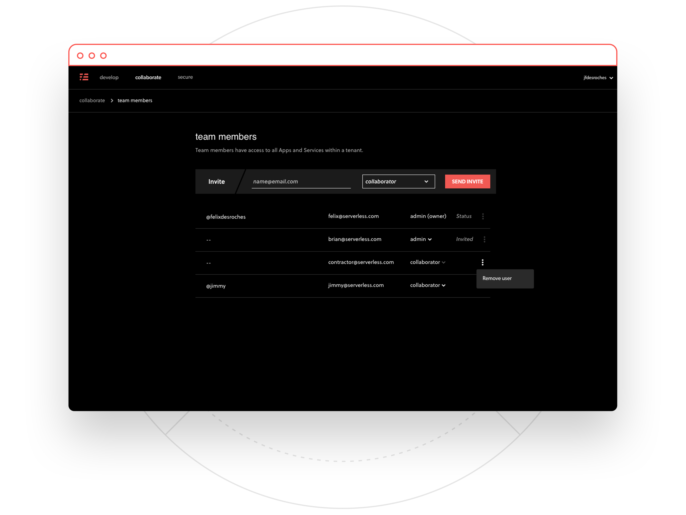 Now, you can collaborate on Framework deployments and services by inviting team members to the project: